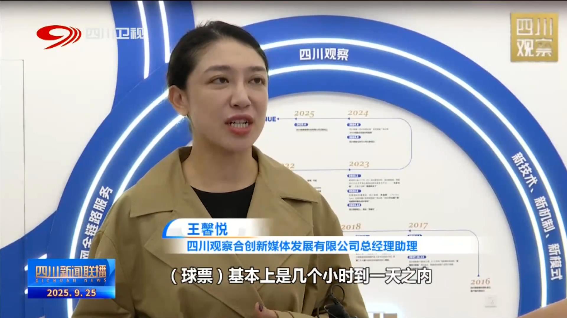 四川观察合创新媒体发展有限公司总经理助理 王馨悦:(球票)基本上是几个小时到一天之内很快就售完了。接下来,研发一些跟赛事联动的跟着赛事去旅行的一些功能,让当地文旅也跟着赛事一起火爆起来。